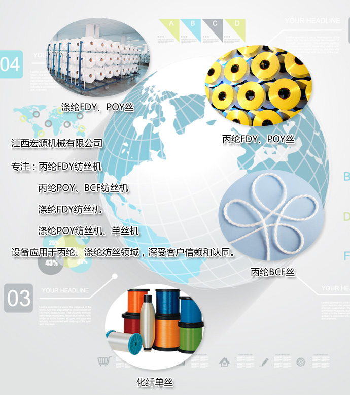 本公司專業(yè)生銷售:滌綸POY紡絲機,丙綸BCF紡絲機,江西滌綸POY紡絲機 ,丙綸POY紡絲機,江西丙綸POY紡絲機,FDY滌綸紡絲機,高強滌綸紡絲機,滌綸FDY民用絲紡絲機,購買滌綸POY紡絲機找江西宏源